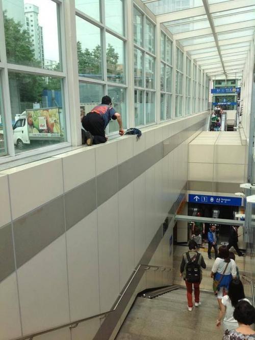 인터넷에서 논란이 되었던 청소 용역 아주머니의 너무나 위험한 모습