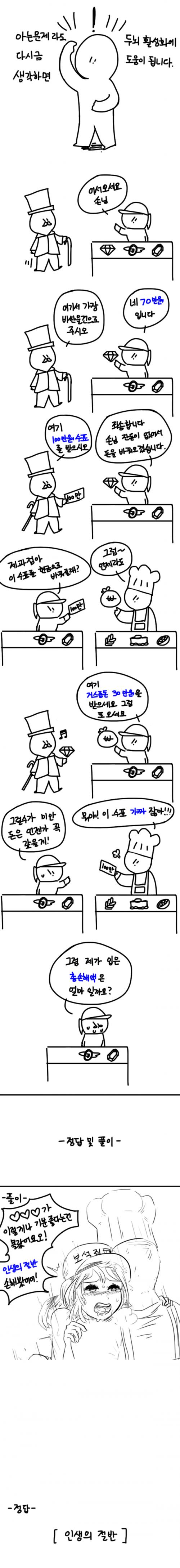원래 보석상이 얼마를 손해 봤는지를 푸는 문제에요