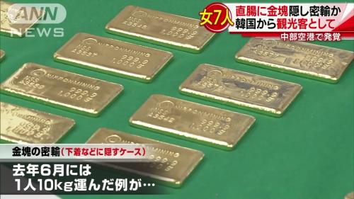 일, 직장에 금괴 숨겨 밀반입하려던 한국여성 7명 적발