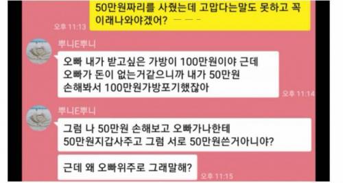 네가 100짜리 가방을 사달라고 할 때 100에 해당하는 부담을 받았어.