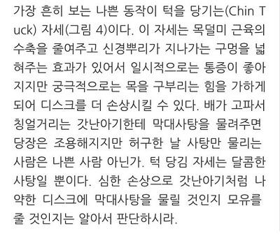 헐!!!! 젤 위에 목 꺾는거 맨날하는데... ㅠ_ㅠ 뚝 소리나면 시원한 느낌 들어 계속하게 되는데 그 뚝소리가 안좋은 거라고 하긴 하죠... ^^;; | ||
