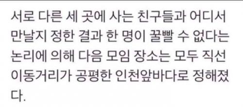 공정하네요. 하필이면 두명간의 거리가 비슷한게 함정이긴하지만...