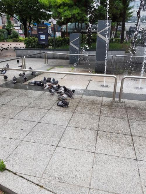ㅋㅋㅋ 비둘기는 물 싫어하는 줄 알았는데.. | ||