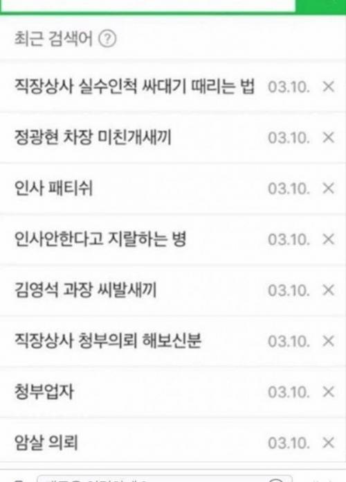 퇴사한 신입사원의 검색어 기록 > 유머게시판
