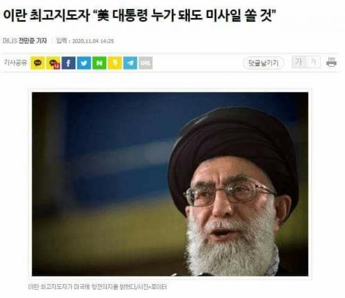 유머로 스크랩 해볼까 하고 영어 기사 찾아보니.... 누가되든 '미국의 추한 얼굴은 바뀌지 않는다' or '이란한테 항복하게 될 것이다' 라는 말한거 밖에 없네요. 국내 기자들의 자극적인 제목 뽑기란... | ||