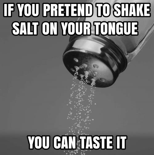 혀 위에 소금통을 들고 흔드는 상상을 하면 실제로 소금 맛이 느껴진다