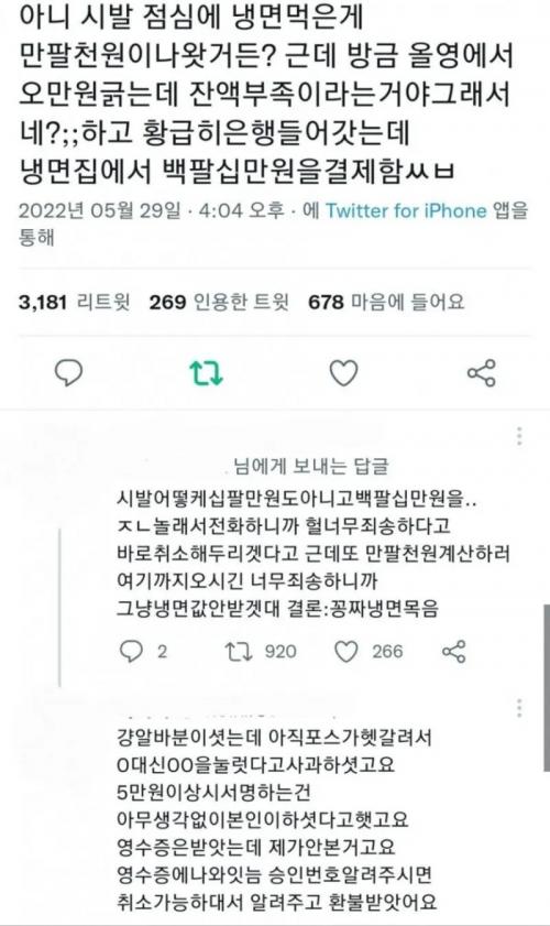 냉면집에서 180만원 결제