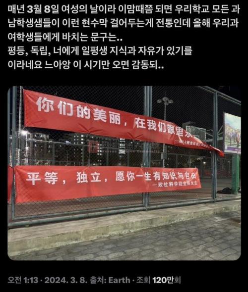 [유머] 중국에서 여성의 날에 남자들이 단 현수막 > 유머게시판