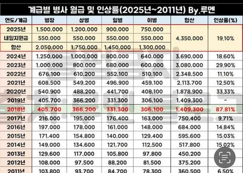 2011~2025년 군인들 병사 월급 > 유머게시판