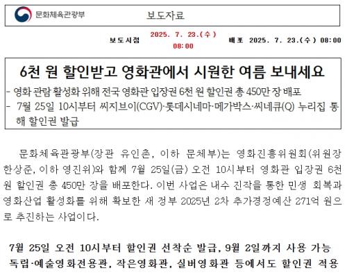 문체부에서 제공하는 6천원 영화 할인쿠폰은