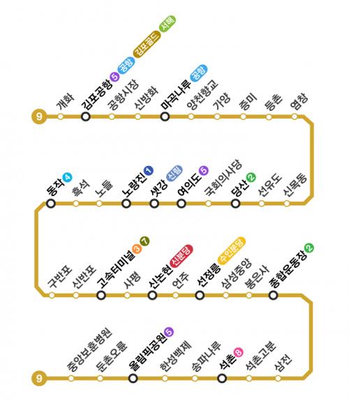 서울 지하철 9호선 노선도 (서울 지하철 9호선 노선도) 고화질 안내 확인하기