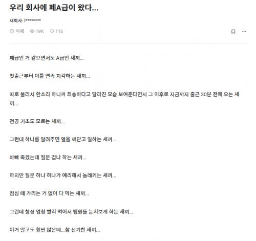 우리 회사 폐A급이 들어왔다 > 유머게시판