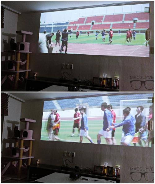 (보통 빔프로젝터는 초점거리가 길어서 충분한 공간을 두고 설치해야 하는데