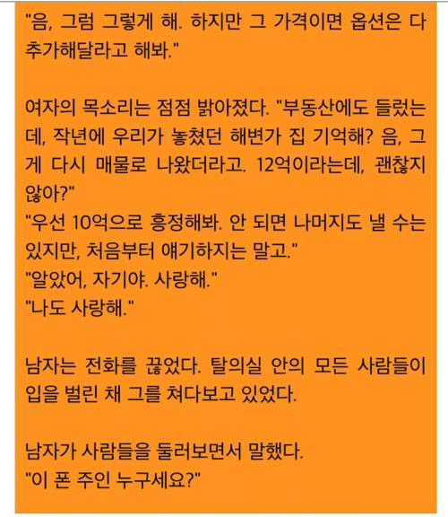 돈쓸생각에 남편 목소리도 구분못하는 아줌마 이야기인가요? ㅋㅋ | ||