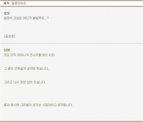 그래서 엄마 사진하고 동영상 많이 찍어두라고 하던데요.... | ||