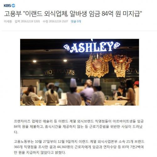 외식산업이 전반적으로 개판입니다. 이랜드보고 딴곳도 정신좀차렸으면 | ||