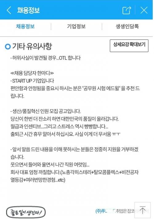 월급과 인센티브만 많이 주면 그나마 괜찮은듯.ㅋㅋ | ||