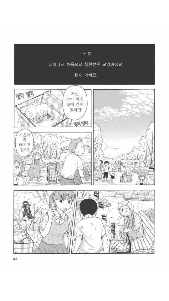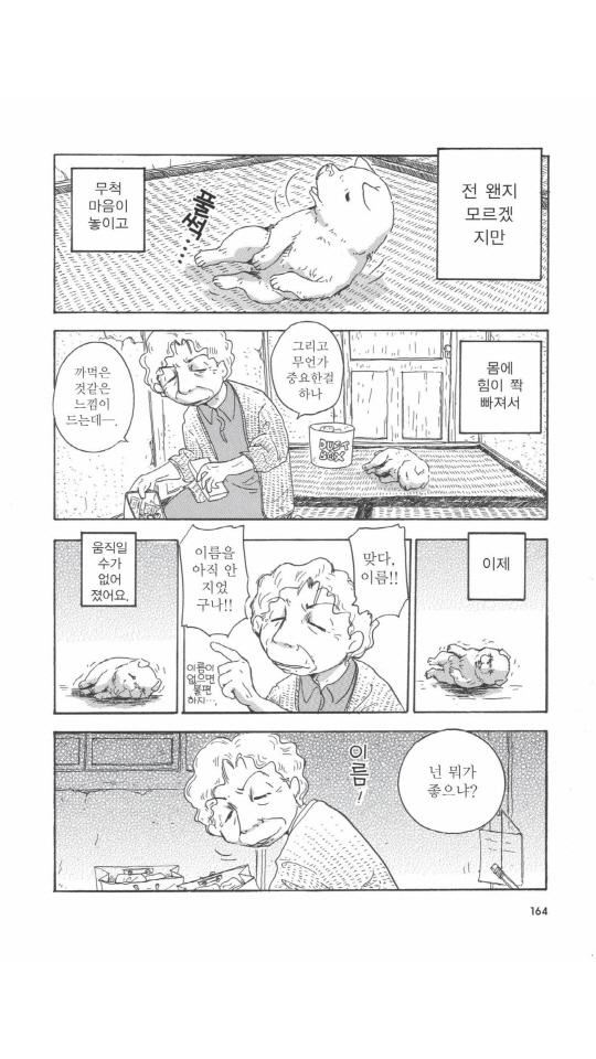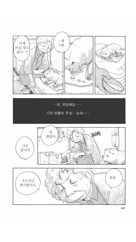 확실한 뒷 이야기는 아니지만...두권에 걸쳐 나온 분량이라고 하니...아마 강아지도 건강해지고...할머니도 삶의 의욕을 계속 이어가실 것 같아요...아...간만에 책 사고 싶어지네요...만화책이지만요...ㅋ |