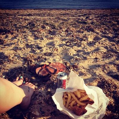 바닷가에서 피쉬앤 칩스 즐기는 중에 찍은 인스타그램 사진