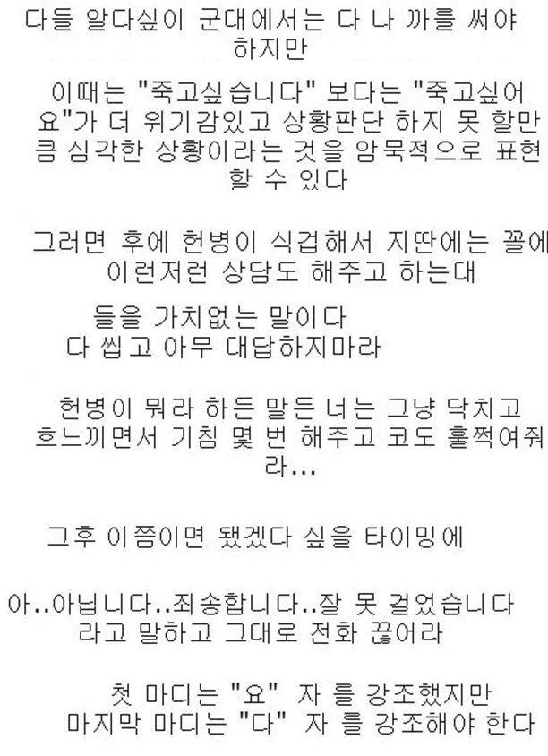 제가 군복무할때 본부중대에 특수보직으로 자대배치받은 놈이 흔한 병영생활에 적응을 못했는지