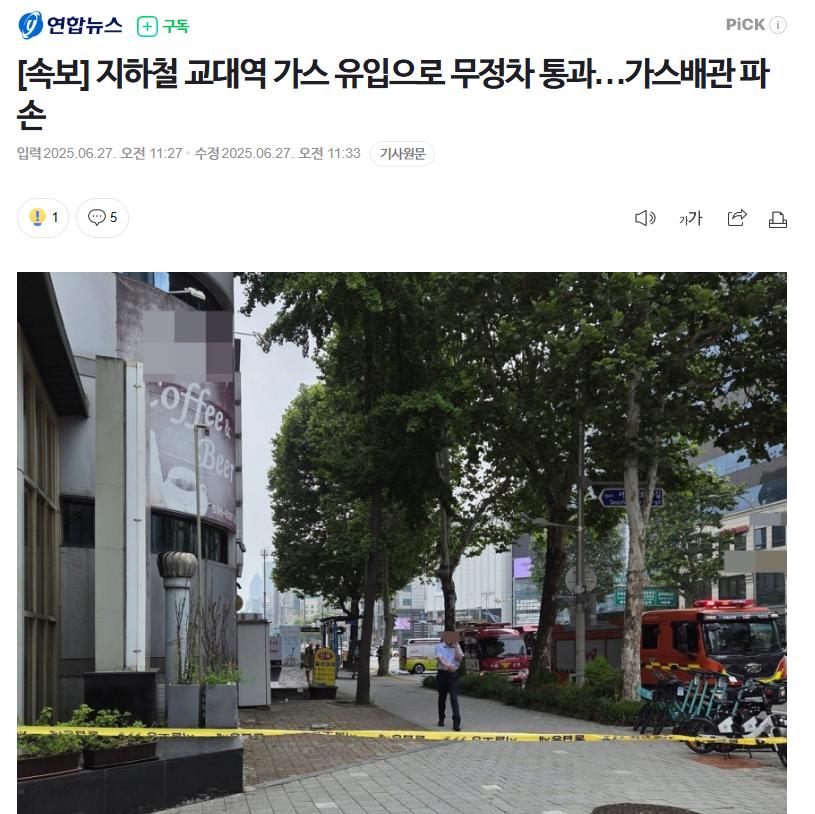 교대역 가스 배관 파손... ㄷㄷ > 유머게시판
