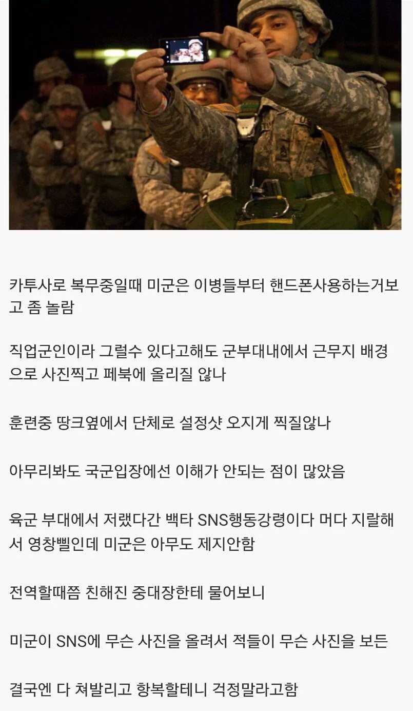 사실 우리나라 군대도 보안시설 말고는 촬영한걸 처벌할 근거는 없지 않나요? |
