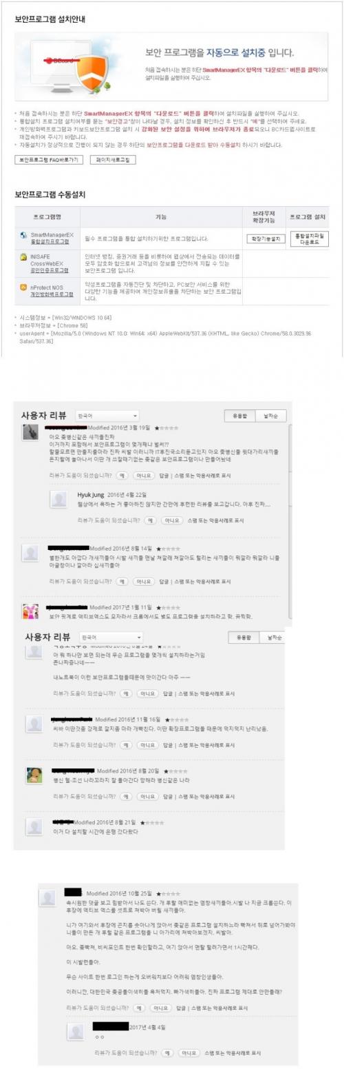 그리고 다른 백신프로그램 쓰고 있는데도 안랩도 설치해야만 하게 만들어서 필요도 없는 안랩도 설치되고, 마음대로 그 사이트 나와도 계속 유지되도록 자동설정되어 있고,