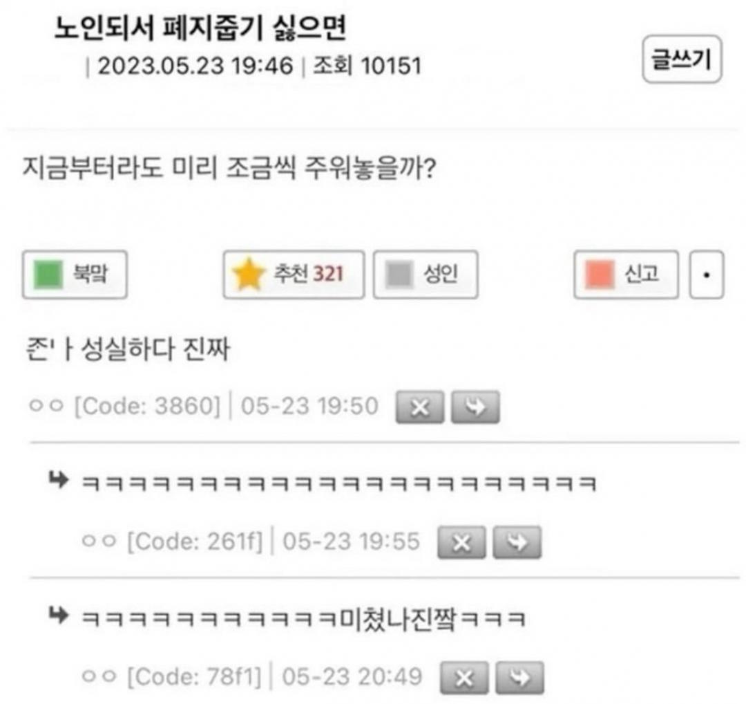 노인되서 폐지줍기 싫으면 > 유머게시판