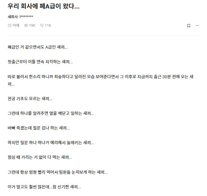 우리 회사 폐A급이 들어왔다 > 유머게시판