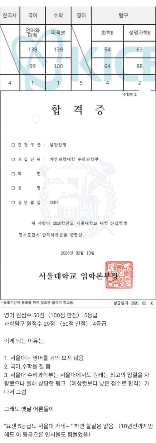 올해 수능 5등급 서울대 정시 합격 > 유머게시판