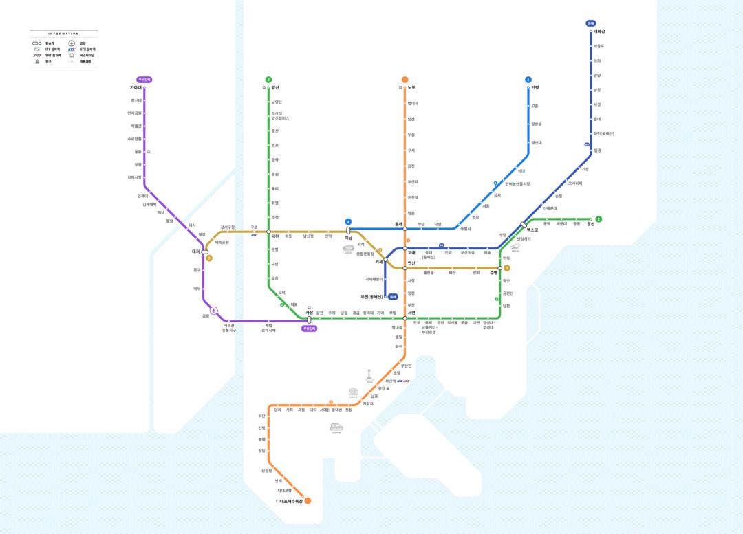 특히 부산 지하철 노선도는 미남, 서면, 동래, 부전, 안평 등 부산의 주요 지역을 연결하며 시민과 방문객 모두에게 효율적인 이동 경로를 제공합니다. 부산 지하철 노선도를 활용하면 도시 내 이동뿐 아니라 환승을 통한 광역 이동까지 계획할 수 있고, 카카오맵이나 네이버 지도에서 부산 지하철 노선도를 고화질로 확인할 수 있습니다. 앞으로도 부산 지하철은 지속적인 시설 개선과 서비스 확장을 통해 시민들의 편리함과 만족도를 높일 것입니다.