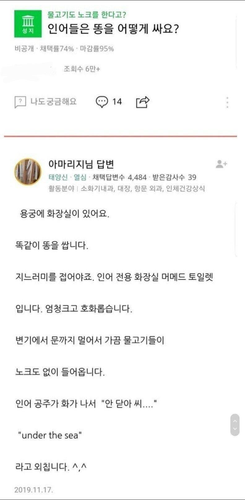 인어는 어떻게 똥을 싸요 ? > 유머게시판
