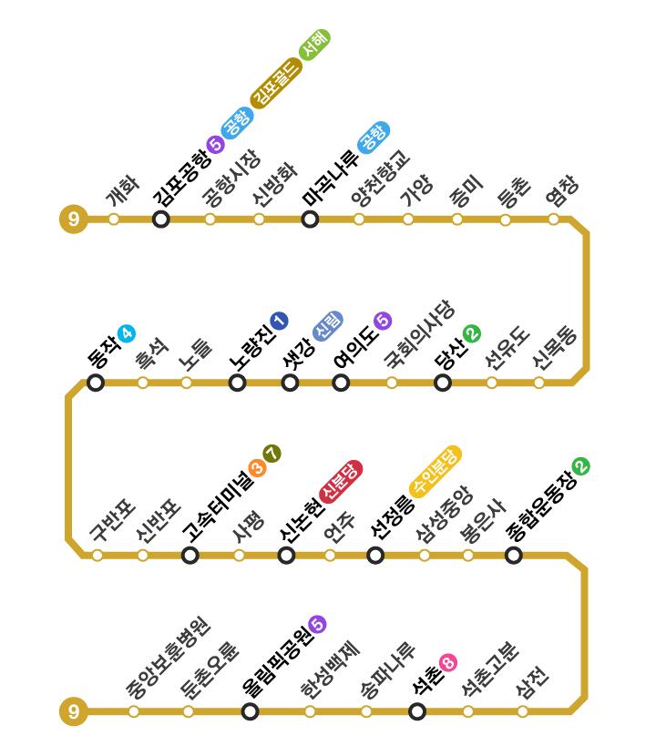 서울 지하철 9호선 노선도 [서울 지하철 9호선 노선도 최신] 고화질 노선확인 안내