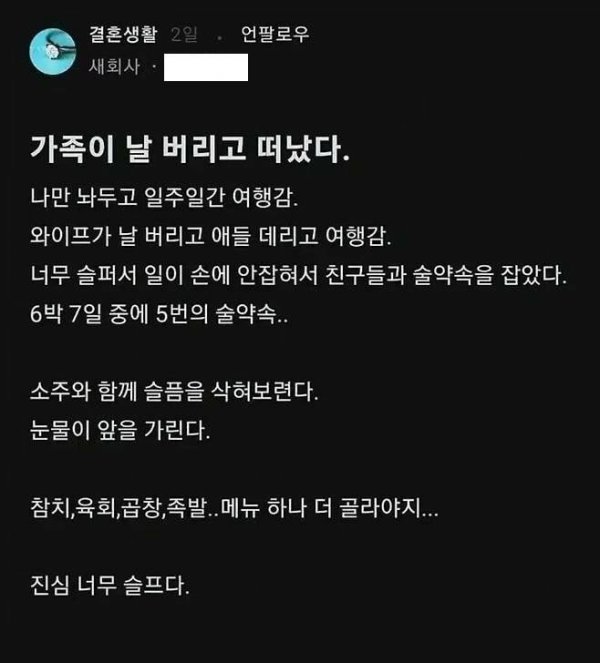 가족이 날 버리고 떠난 슬픈 날이다 > 유머게시판