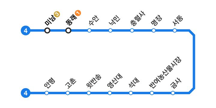 * 주요 역: 미남, 동래, 수안, 안평 등