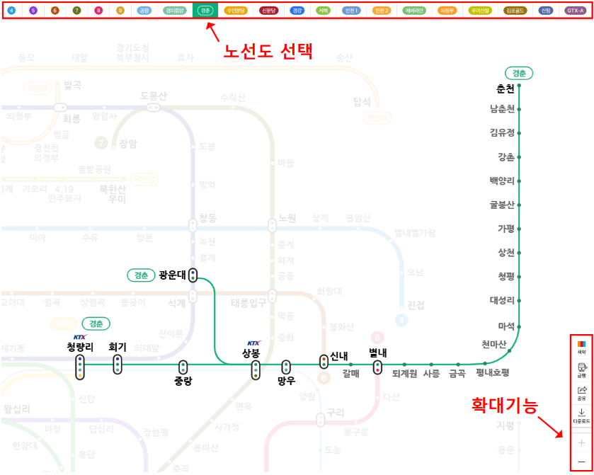 이런 불편을 방지하기 위해 오늘은 경춘선의 최신 노선도, 운행 시간표, 첫차·막차 시간, 그리고 주요 환승역과 구간별 소요 시간까지 간편하게 확인할 수 있는 방법을 소개해드리겠습니다.