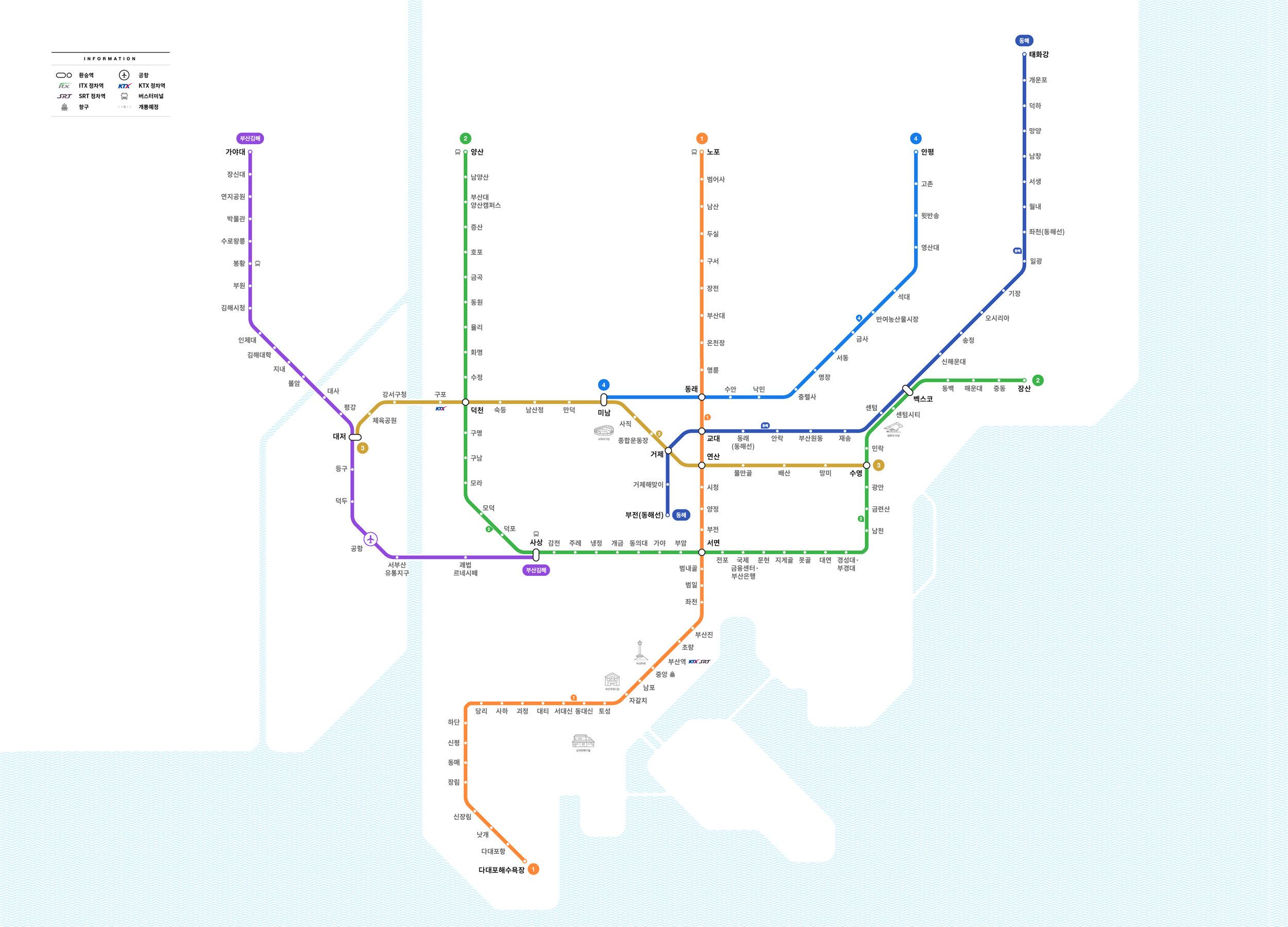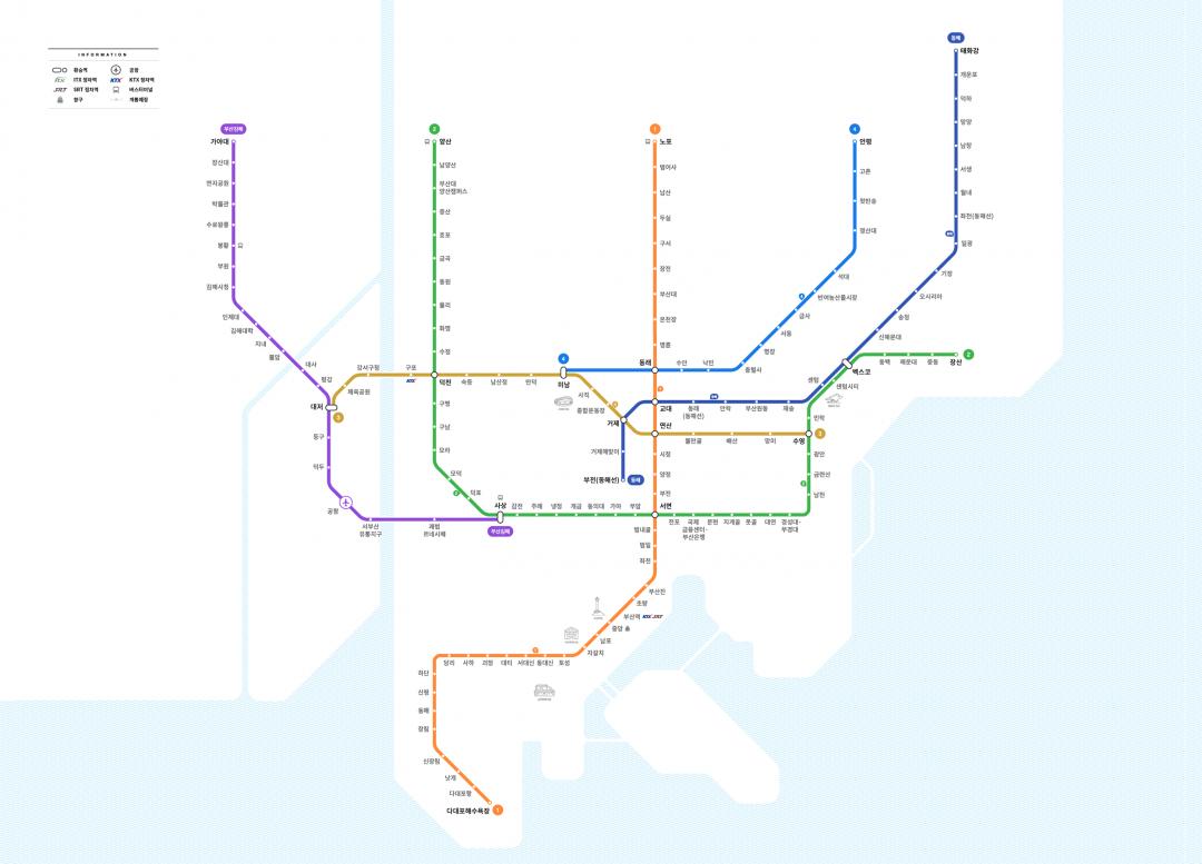 • 총 노선: 1·2·3·4호선 + 부산·김해 경전철