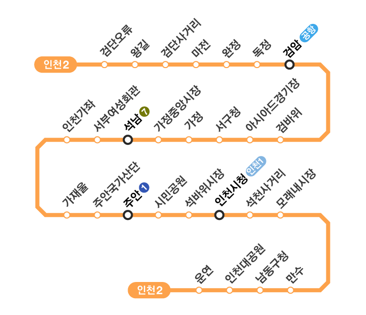 • 주요 환승 지점: 계양(1호선), 인천대입구(인천2호선)