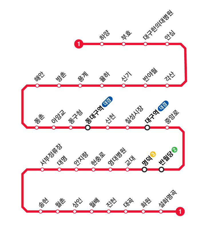 • 환승: 반월당역(2호선), 교대·범어·동대구역(버스 환승 가능)