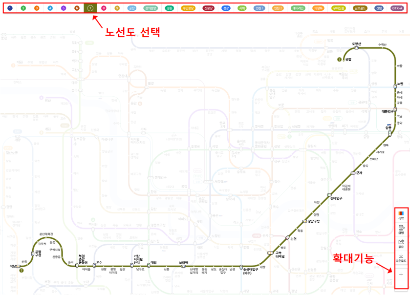 서울 지하철 7호선 시간표 노선도 실시간 최신정보 조회