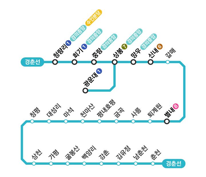 • 막차: 자정 전후, 일부 열차는 상봉~춘천 구간까지만 운행