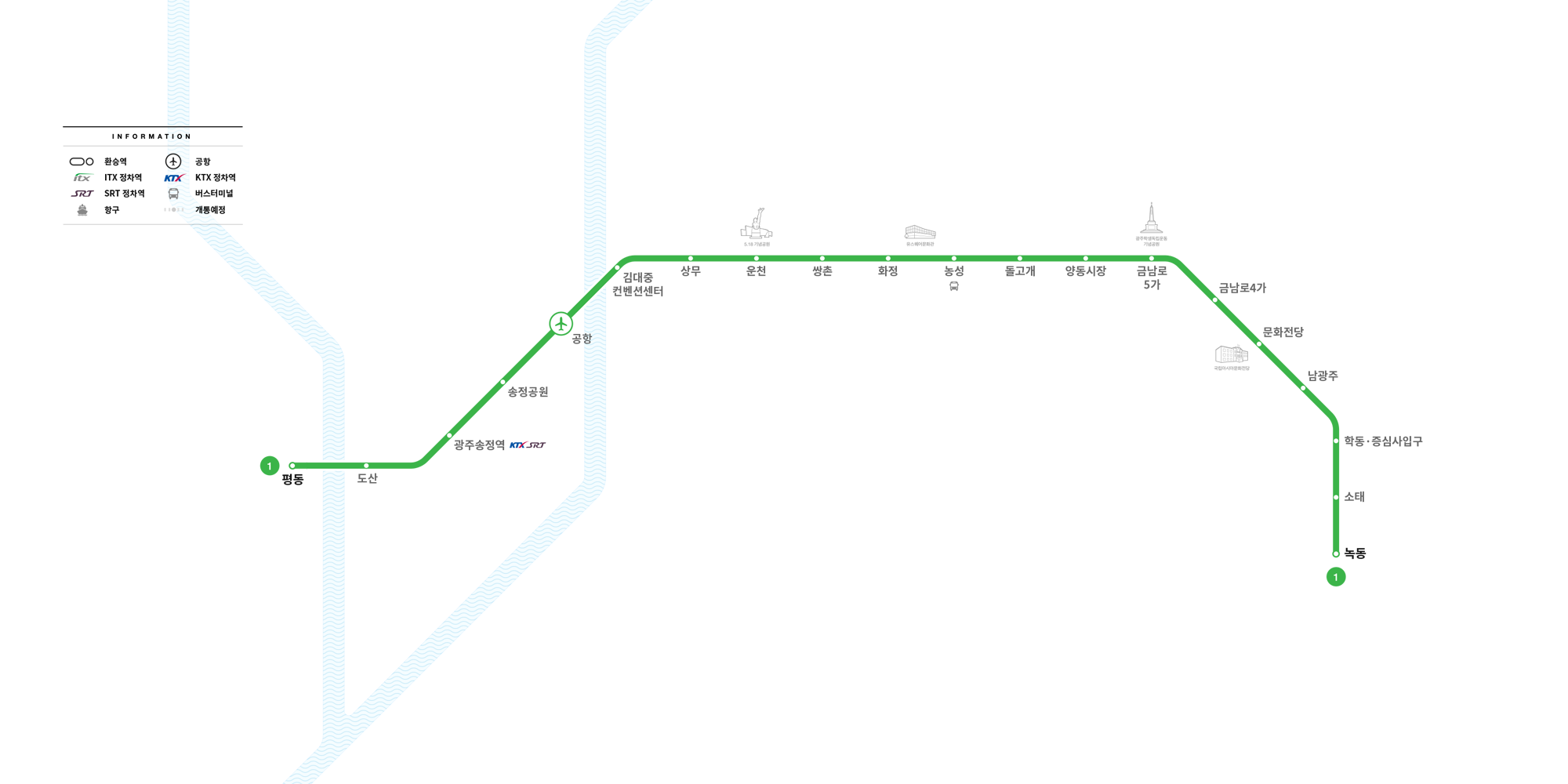 광주 지하철 1호선은 단일 노선이지만 시내 주요 거점을 연결하며, 첫차·막차 시간과 배차 간격을 확인하면 출퇴근과 시내 이동을 효율적으로 계획할 수 있습니다.