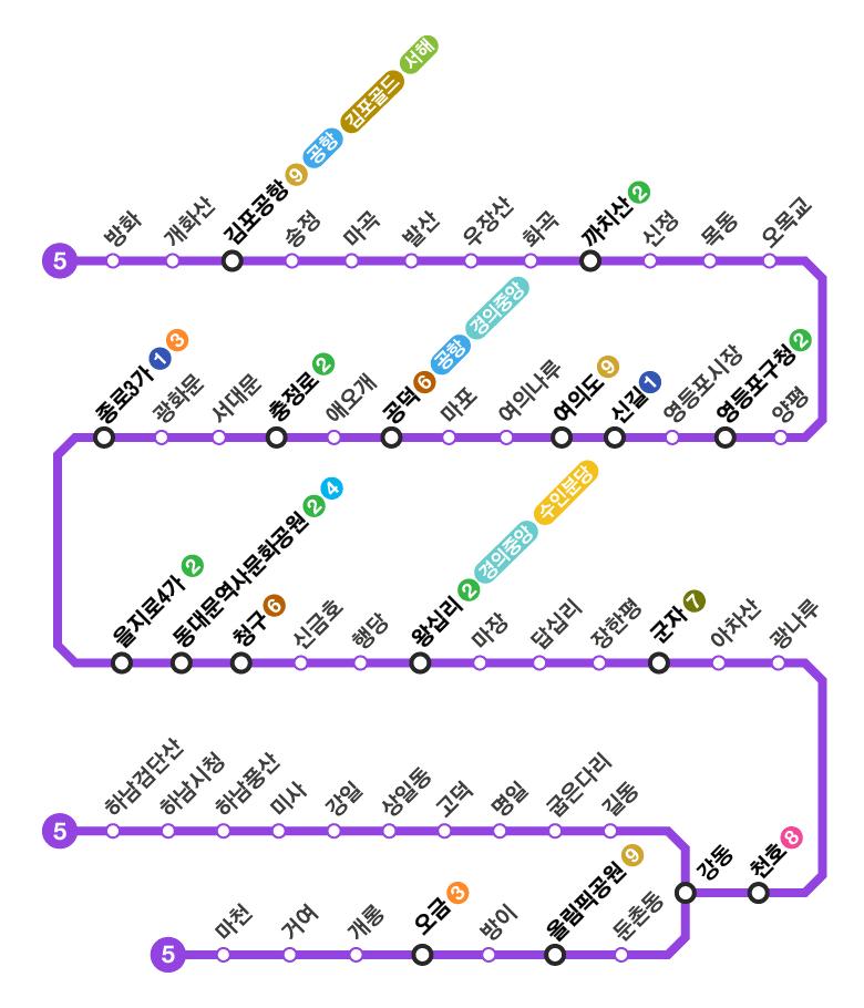 5호선은 서울 동서권을 연결하는 핵심 노선인 만큼 이용객이 많으니, 출퇴근 혼잡 시간대를 피하거나 실시간 정보 확인 후 이동하는 것이 쾌적합니다.