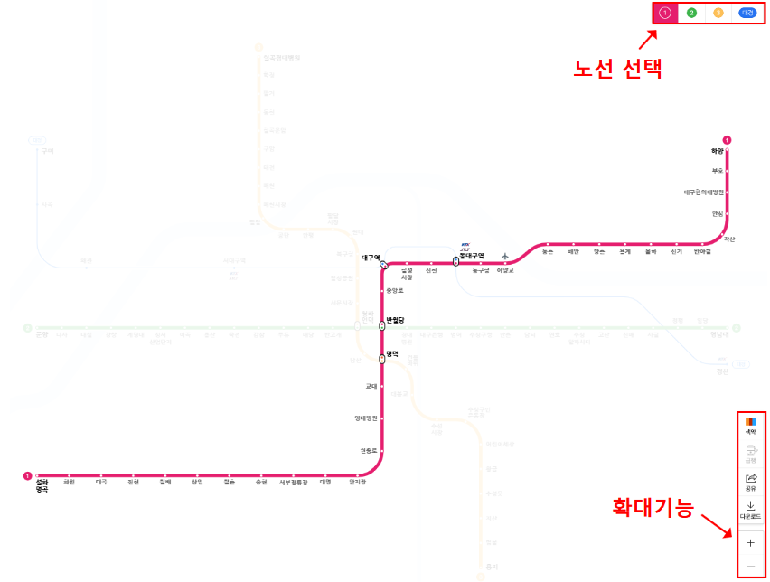 대구 지하철 1호선 노선도 운행간격 노선정보 크게보기
