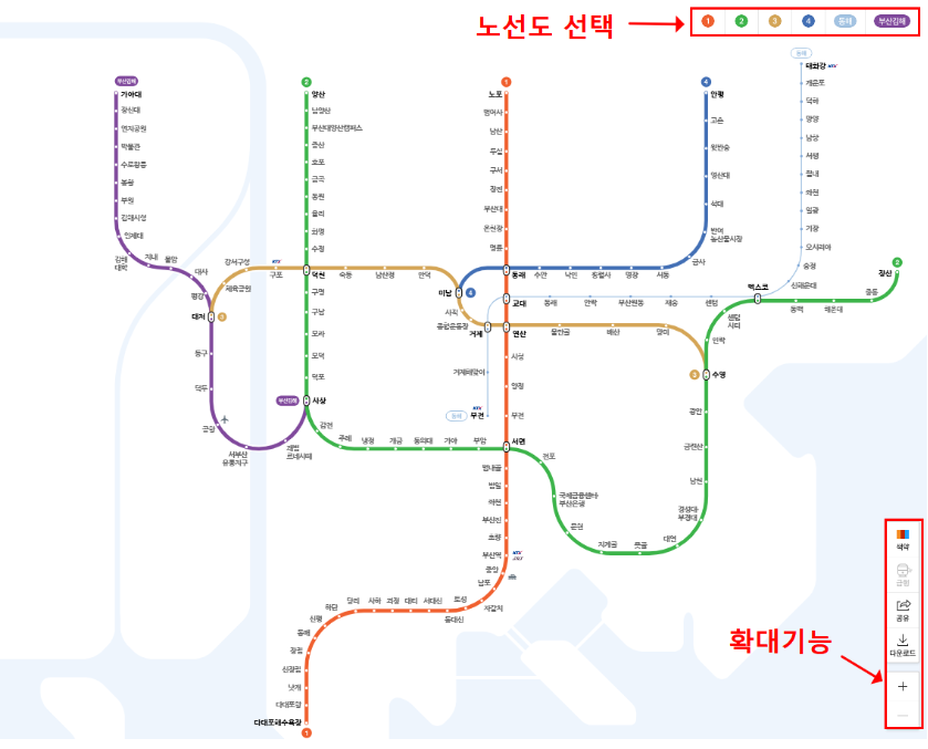 >> 부산 지하철 노선도 확인하기