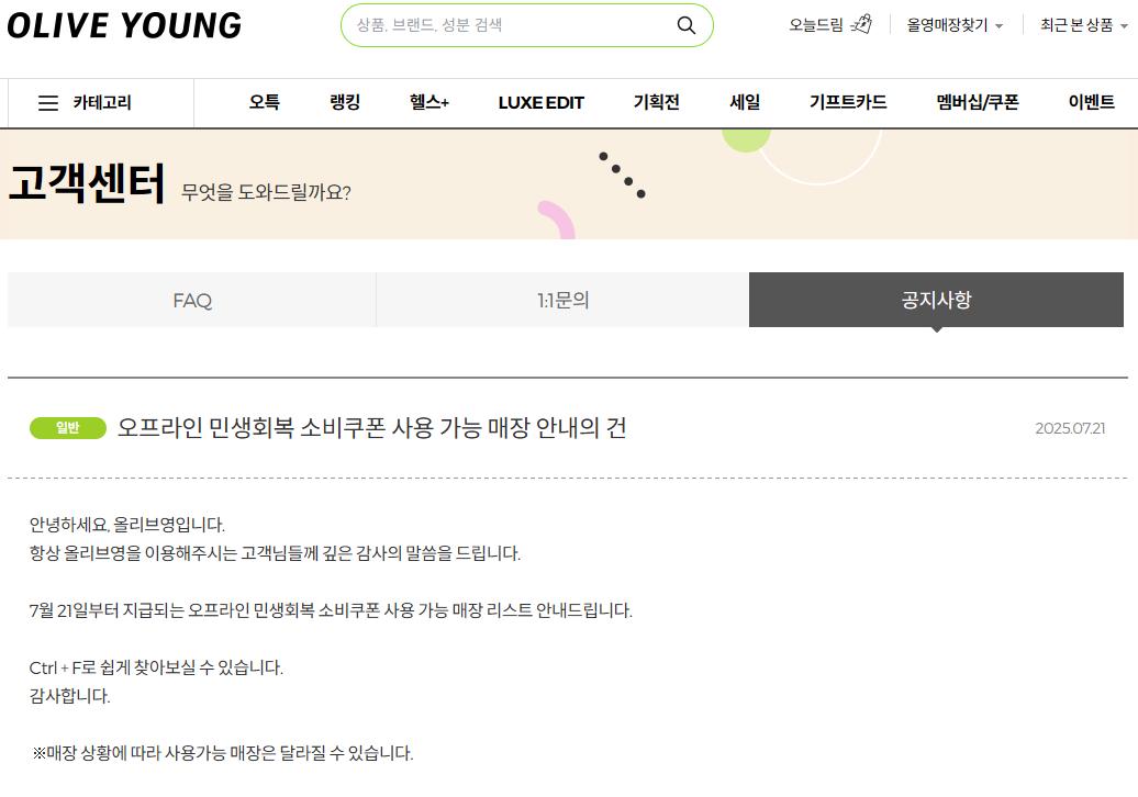 민생회복 소비쿠폰이 올리브영에서 사용 가능하다는 사실, 알고 계신가요? 하지만 모든 지점에서 되는 것은 아니며, 지정된 일부 매장에서만 사용할 수 있다는 점을 꼭 기억해야 합니다.