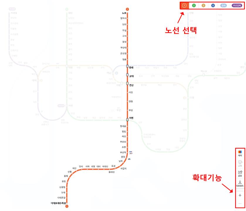 이번에는 부산 지하철 1호선의 노선 구성, 운행 시간표, 배차 간격 등 이용에 꼭 필요한 정보를 간편하게 확인하는 방법을 소개해드리겠습니다.