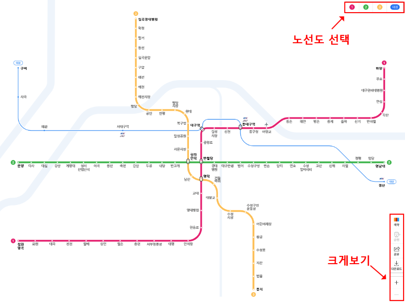 그래서 대구 지하철을 보다 편리하게 이용하실 수 있도록 각 노선의 노선도, 시간표, 배차 정보까지 한곳에서 확인할 수 있는 방법을 정리해 알려드리겠습니다. 출발 전에 확인만 해두셔도 시간 낭비 빠른 이동이 가능합니다.