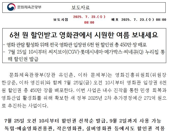 문체부에서 제공하는 6천원 영화 할인쿠폰