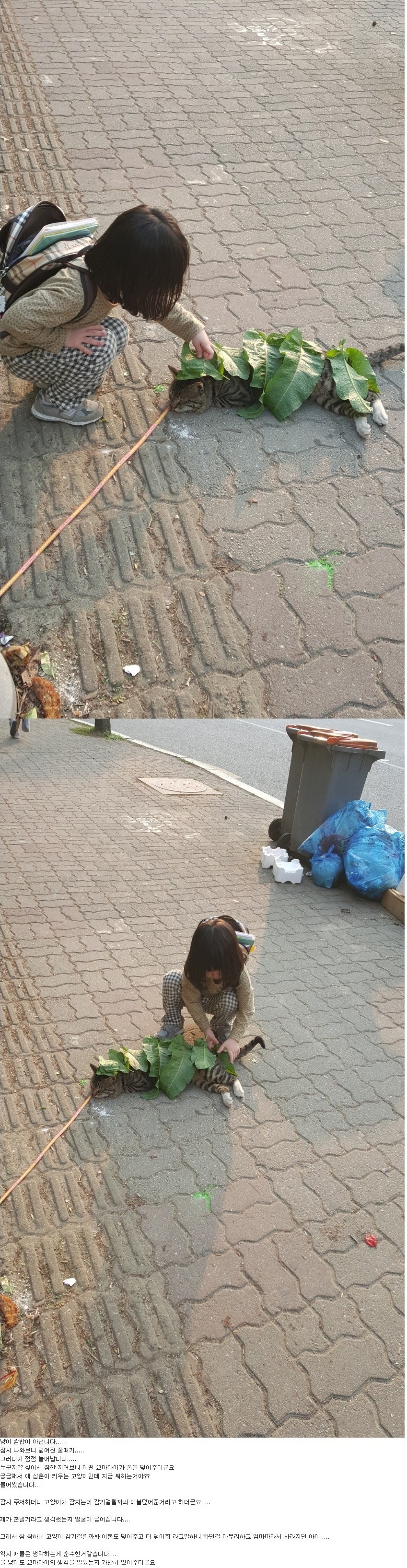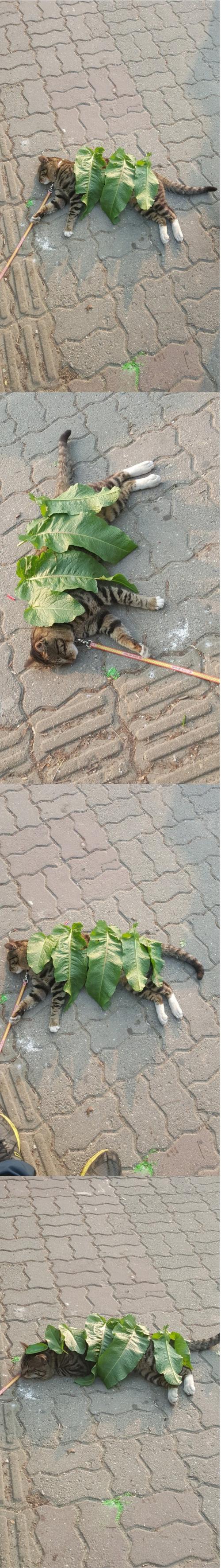 저 자세로 자는 고양이라니. | ||